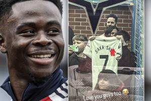 萨卡配文回复:“我也爱你们? ”。