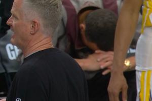 比赛加时赛,勇士球员穆迪在一次空篮快攻中无对抗受伤,膝盖遭遇毁灭性伤病。