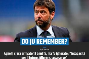 阿涅利:“意甲联赛必须重新拿回它的领导权,提出一套涵盖整个意大利足球治理体系的改革方案,以彻底清除如今已令人无法忍受的争吵不休与透明度缺失。”