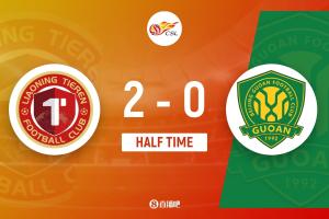 第45分钟,姆本扎传中,热菲尼奥包抄推射破门,辽宁铁人2-0北京国安。↓