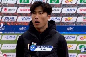 体育资讯3月14日讯 2026赛季中超第2轮,山东泰山主场2-1战胜北京国安。本场斩获进球的泰山球员谢文能,赛后接受了采访。