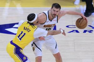 本场,约基奇出战43分钟,投篮19中10,三分6中2,罚球2中2,砍下24分16篮板14助攻5抢断1盖帽!