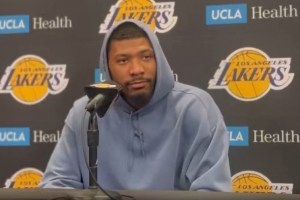 体育资讯3月15日讯 NBA常规赛,湖人主场127-125加时险胜掘金,赛后斯玛特接受采访。