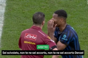 体育资讯3月18日讯 在转播方DAZN的《Open VAR》节目中,除了公开国米对阵亚特兰大的VAR录音外,还展示了主裁曼加涅洛与邓弗里斯在亚特兰大进球有效后的对话。